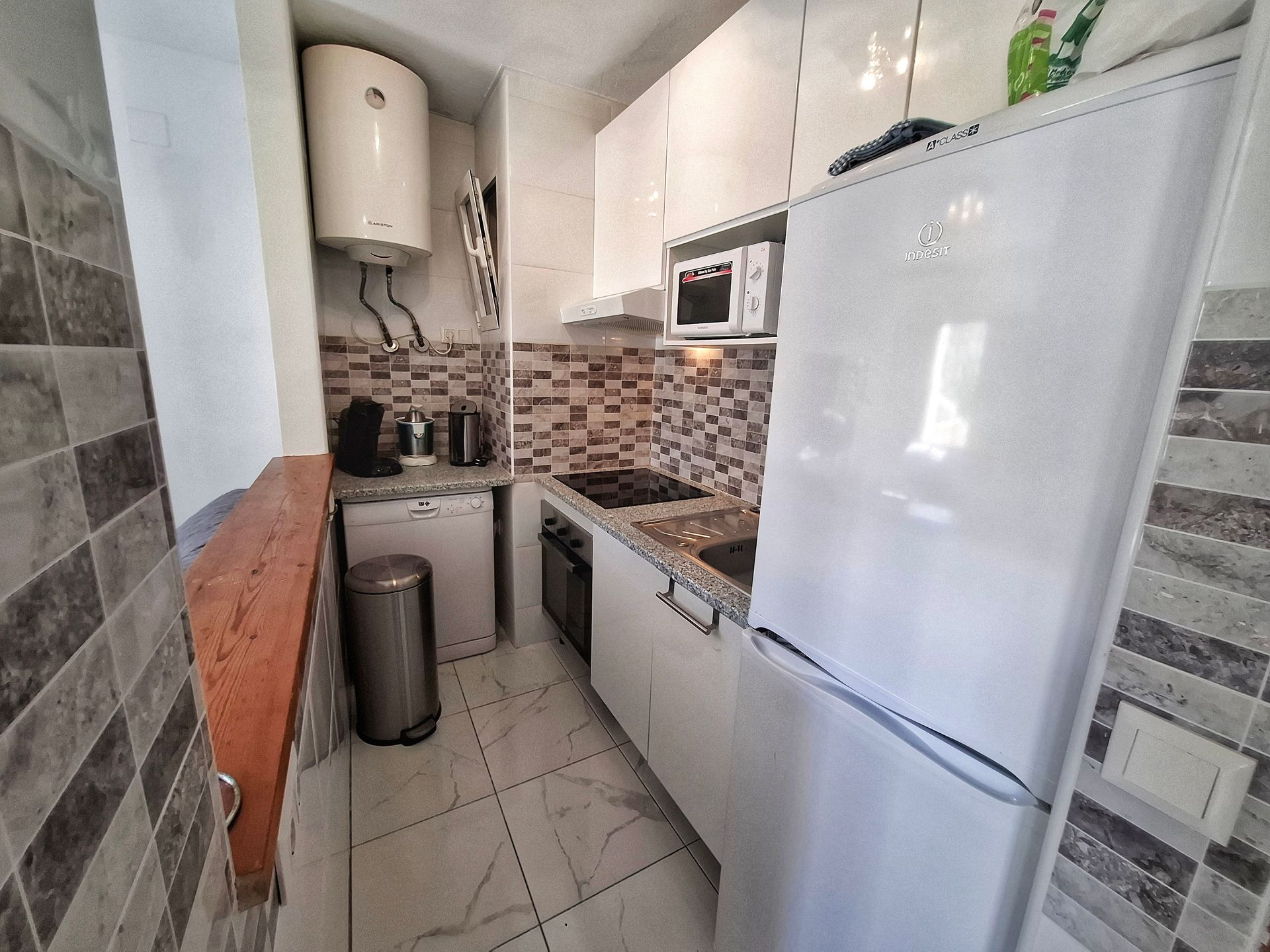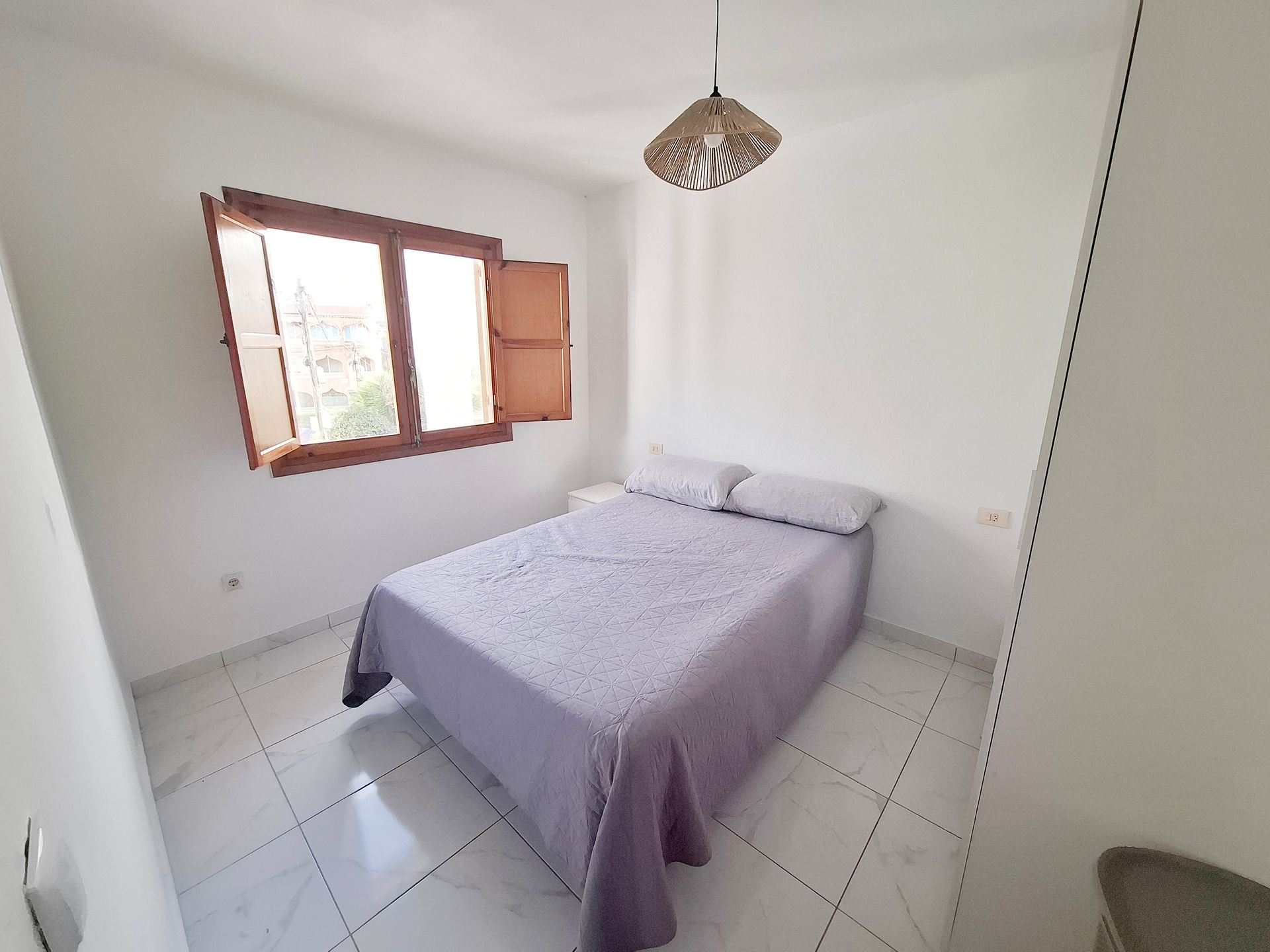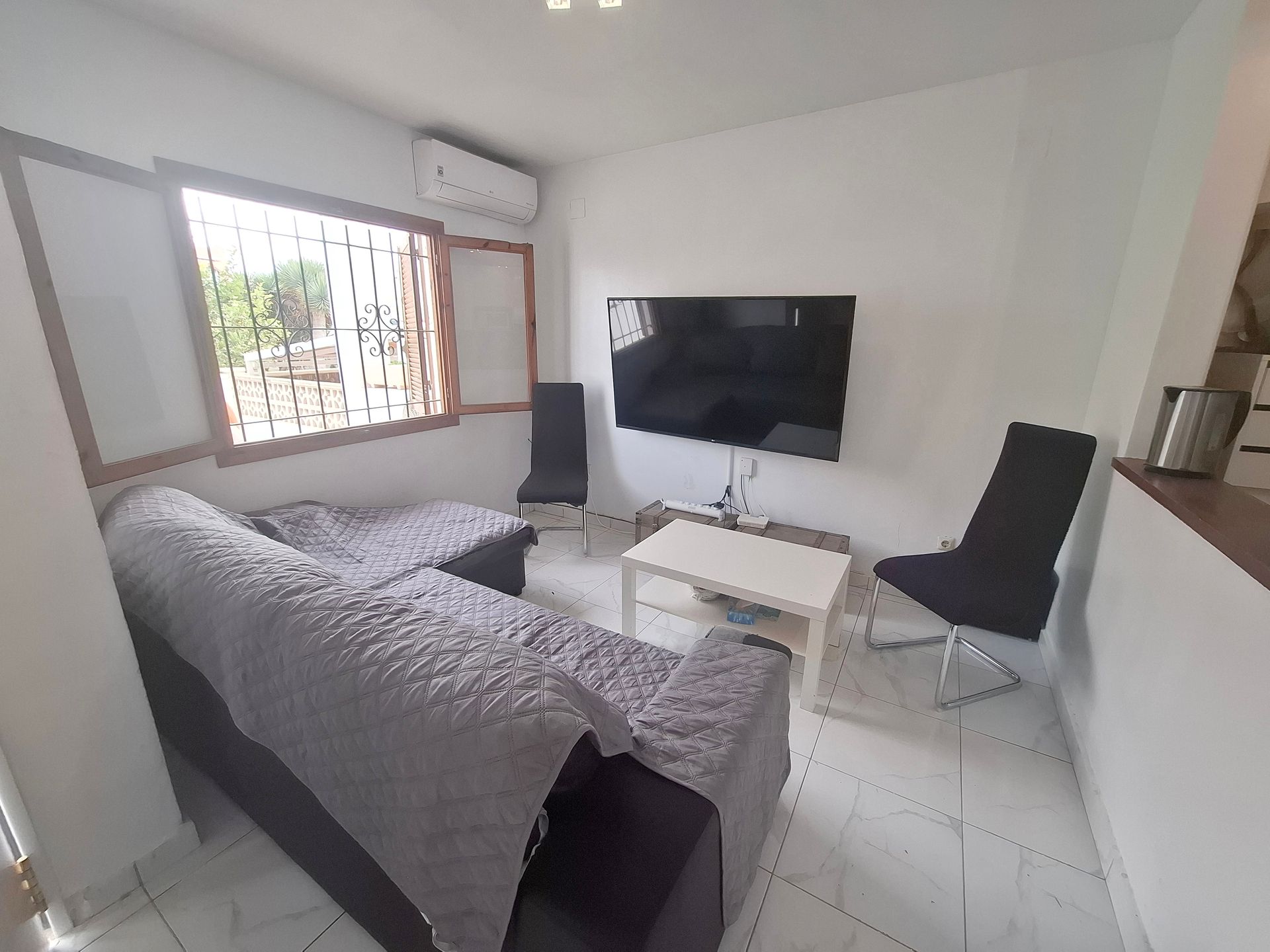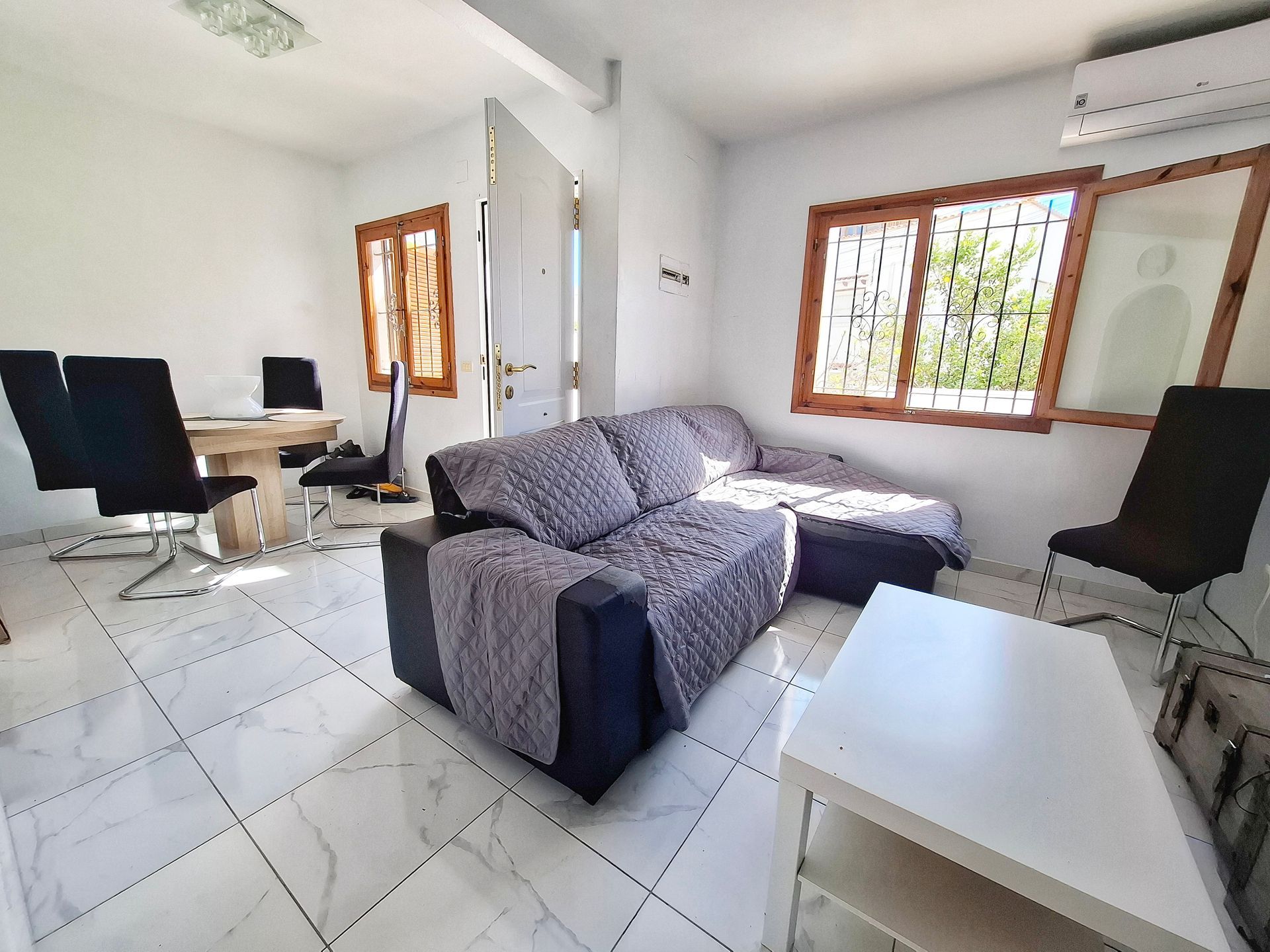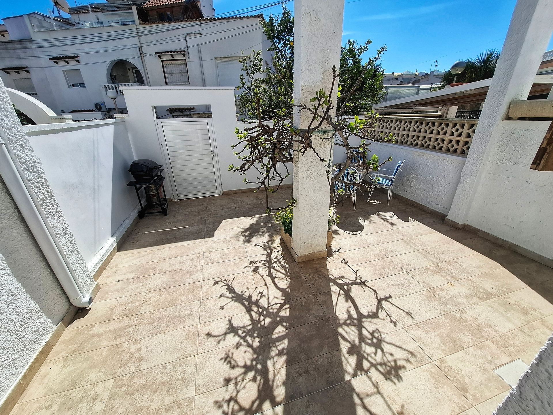Esta vivienda está en parte reformada; aunque necesita mejorarla. Tiene Orientación Sur por lo que tiene mucho sol. Dispone de un amplio patio de entrada 20 m2 y una superficie construida de aprox. 68 m². La urbanización dispone de varias piscinas y está a 500m de playa de Los Locos.